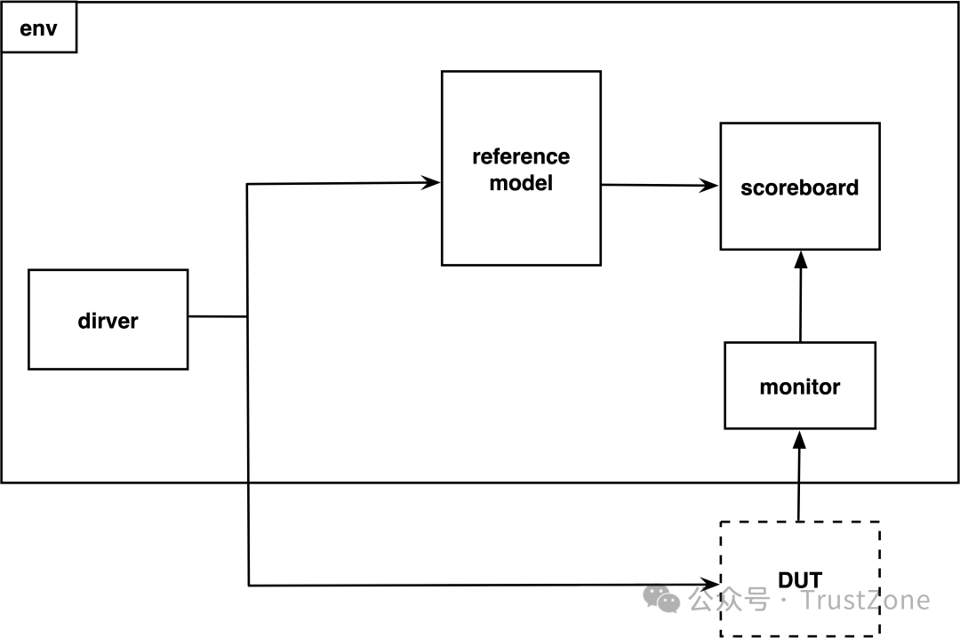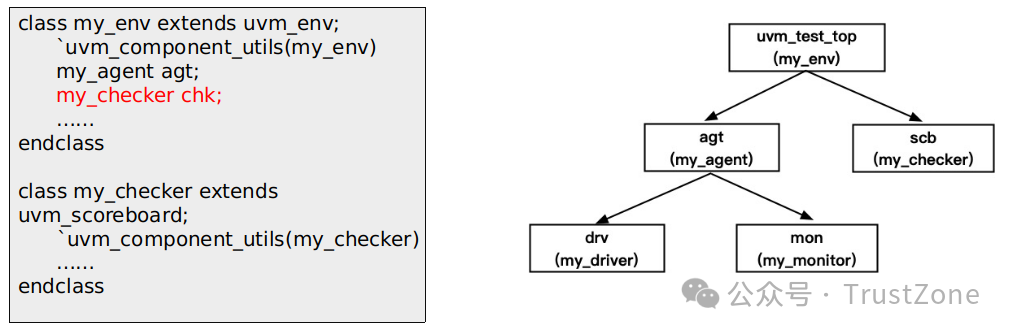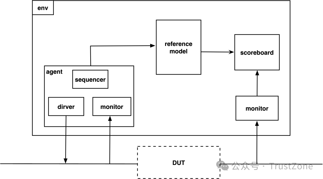 注意:這里的checker是將reference model和scoreboard統(tǒng)一看成一個(gè)整體。reference model和scoreboard的定義和其他component的方式一樣,這里不再贅述。