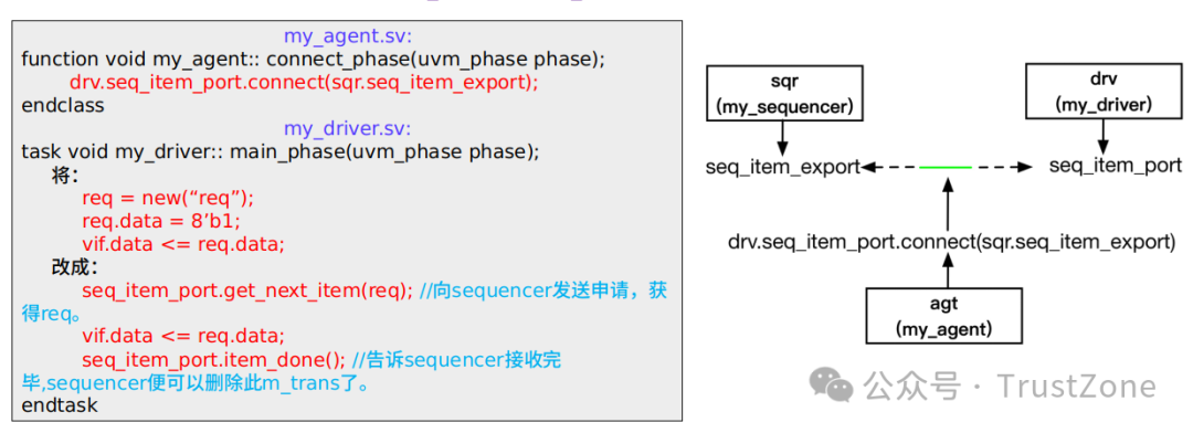 uvm_config_db# (virtual my_if)::set(null, "uvm_test_top.agt.drv", "vif", input_if) //與driver的interface建立連接,將top_tb.input_if與my_driver.vif連接起來