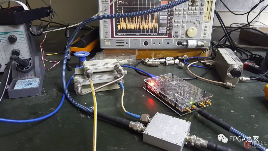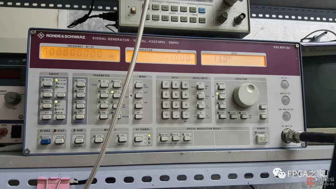 頻譜儀用來校準(zhǔn)到達(dá)測(cè)試電路板的B信號(hào)(由信號(hào)源產(chǎn)生)強(qiáng)度。