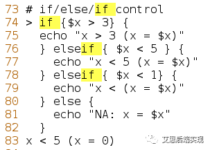 測(cè)試表達(dá)式,為真則執(zhí)行命令,更加完備的格式是if-elseif-else 方式。當(dāng)然,和其他高級(jí)語(yǔ)言一樣,使用非完備格式從語(yǔ)法上講,是沒(méi)有任何問(wèn)題的,但是設(shè)計(jì)者應(yīng)該有策略保證表達(dá)式不被滿(mǎn)足的情形。