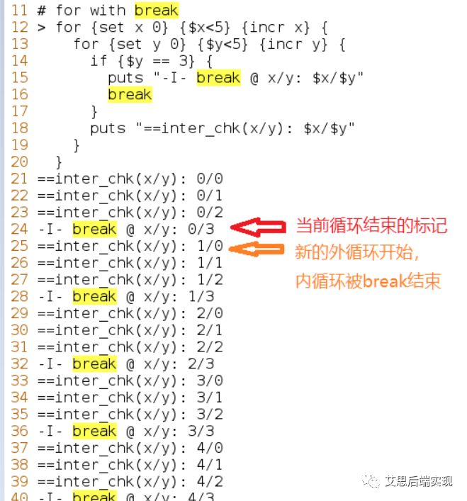 可以通過(guò)它們,去干預(yù)內(nèi)部循環(huán)細(xì)節(jié),這個(gè)可以增加腳本的靈活性,break的示例如下: