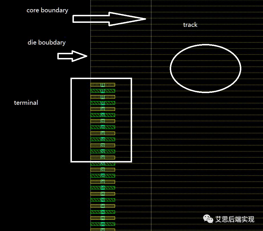 此外,大家還可以看到一個信息,track都是壓在die的邊界上的,這個和site_row是不同的。由于所有的繞線都是基于track的,也就意味著,在core和die的加縫處,是可以走線的,但是卻不能放置std-cell的,這點大家要明白。