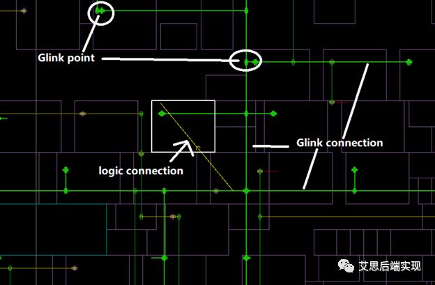 這是一個標(biāo)準(zhǔn)的曼哈頓距離模型:通過Glink任何連線都只有水平和豎直兩種方向,這也是給后期做routingcongestion核算的一個重要參考信息。數(shù)據(jù)庫里所有的連接關(guān)系都會以Glink的形式存在。作為真實route的起點信息。如下圖所示: