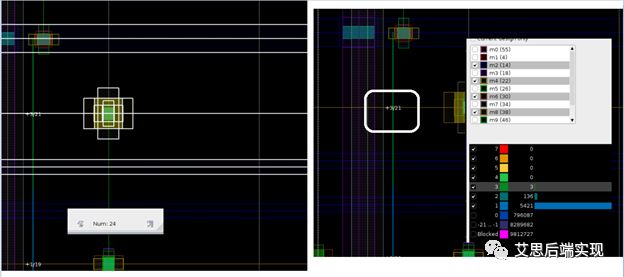 由于GRCs和overflow的評估是基于單個繞線層的,就水平方向而言,如果通過打開不同的layer,在同樣數(shù)據(jù)庫里overflow的結(jié)果是會發(fā)生變化的。視圖里的overflow是所有打開版層overflow的總和,所以,開的層越多,數(shù)值大overflow的數(shù)量就越多,例如下圖,注意看一下overflow3在打開不同版層時的細(xì)微變化:
