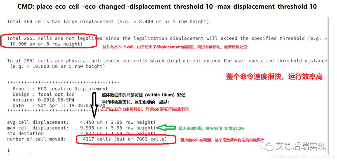 從上邊這個(gè)截圖可以看出來,傳統(tǒng)的legalize模式,帶來的明顯的average/max dis-placement,但是place_eco_cell可以非常好的避免這種情況的發(fā)生。place_eco_cell可以實(shí)現(xiàn)MPI的目標(biāo),而且run-time速度也很快,這到底是為什么呢?天底下還有這么既省時(shí)又省力的兩全其美的好事情?