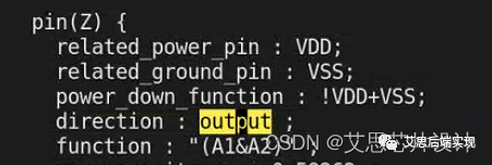 pin scope 的 pin對應(yīng)的PG 信息:這個用于工具判別信號所屬的PG網(wǎng)絡(luò),從而對UPF flow里的isolation或者LS做合規(guī)檢查,注意這里的output pin會有一個powerdown_function的描述,這個對于可關(guān)斷domain的功耗檢查有幫助
