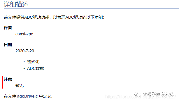 1/** 2 ********************************************************************************************************************** 3 * @file adcDrive.c 4 * @author const-zpc 5 * @date 2020-7-20 6 * @brief 該文件提供ADC驅(qū)動功能,以管理ADC驅(qū)動的以下功能: 7 * + 初始化 8 * + ADC數(shù)據(jù) 9 * 10 ********************************************************************************************************************** 11 * @attention 12 * 暫無 13 * 14 ********************************************************************************************************************** 15 */