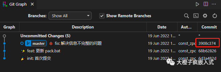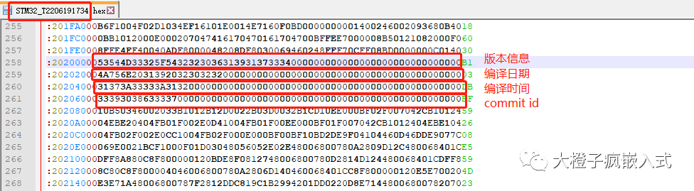 如果程序是通過 Git 工具管理的,那么此時可以通過 Git commot 提交 id 信息區(qū)分(每次提交的 id 值是不同的),通過在程序版本信息中添加 Git commot 提交 id 信息便能快速了解該版本固件對應(yīng)的源碼是哪一次提交的。