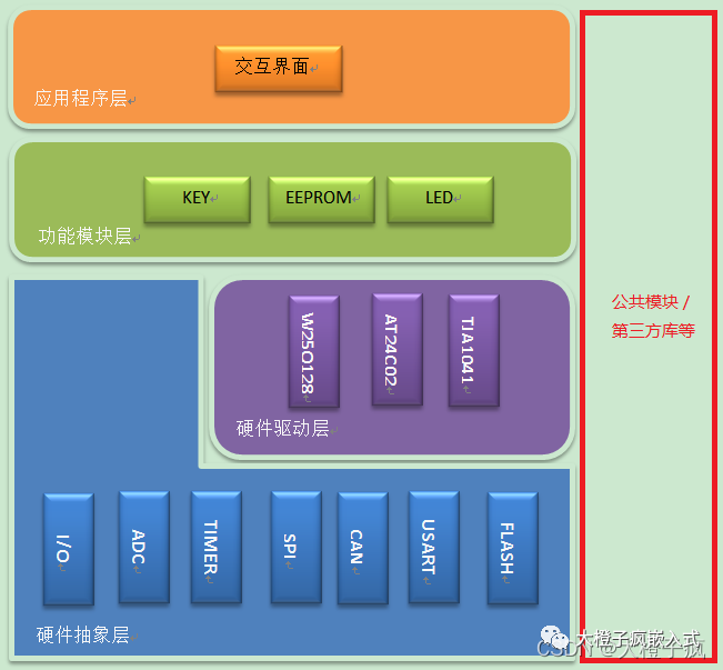 公共模塊主要有各模塊都需要使用的類型定義、結(jié)構(gòu)體定義、通用函數(shù)或常用宏定義等(通常屬于基礎(chǔ)類的功能,不會受功能需求和不同平臺的影響)。