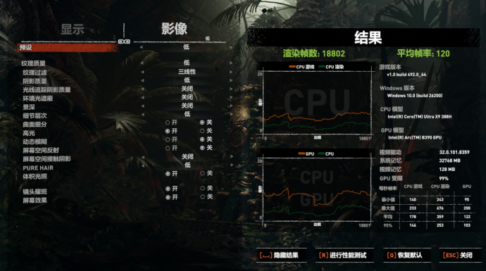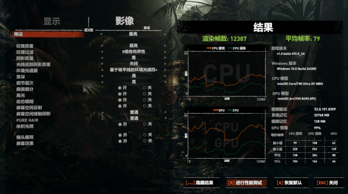 從游戲?qū)崪y結(jié)果不難看出,如果是電競網(wǎng)游,酷睿Ultra X9 388H集成的銳炫B390可以輕松應(yīng)對,妥妥的電競級幀數(shù),即使提高畫質(zhì)也不會有明顯的卡頓。3A游戲方面,如果是《古墓麗影:暗影》之類的老游戲,那么即使在1080P高畫質(zhì)設(shè)定下也能有百幀上下的平均幀數(shù);提升至2K分辨率,高畫質(zhì)設(shè)定也能夠在60幀左右,甚至更高。