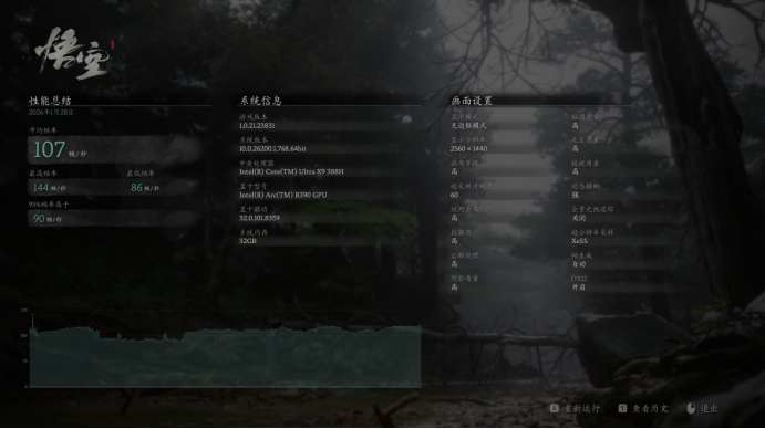 至于一些新晉的3A游戲,那么在1080P低畫質(zhì)設(shè)定下,銳炫B390也可以直接提供流暢的游戲體驗(yàn),這時(shí)如果借助XeSS,特別是開啟幀生成后,那么整個游戲體驗(yàn)的流暢性將有大幅提升。如《黑神話:悟空》中,在1080P+高畫質(zhì)設(shè)定下,開啟超采樣(60)+幀生成,游戲平均幀能達(dá)到147;同樣設(shè)定下,分辨率提升至2K,那么平均幀數(shù)能達(dá)到107,且95%幀率達(dá)到90,表現(xiàn)相當(dāng)可以了。