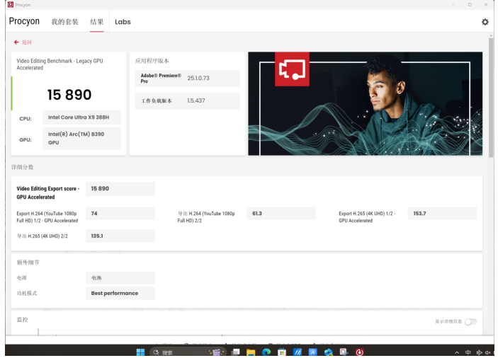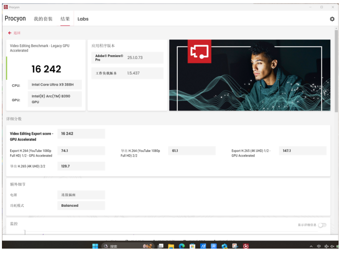 在UL Procyon的視頻編輯測試中,華碩靈耀14雙屏2026的成績?yōu)?6242,相比去年搭載酷睿Ultra 9 285H輕薄本成績提升超過了40%。