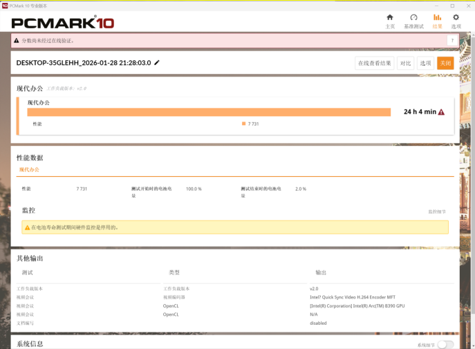 同樣的設(shè)定下,連接Wi-Fi,通過PCMark 10現(xiàn)代辦公模式進(jìn)行續(xù)航測試。最終華碩靈耀14雙屏2026的續(xù)航時(shí)間達(dá)到了24小時(shí),相比上代產(chǎn)品的13小時(shí)幾乎翻了一倍,而且性能評分提升超過了50%。