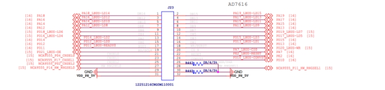 · 引腳一一對應(yīng):AD7616模塊通過J23接口直連開發(fā)板