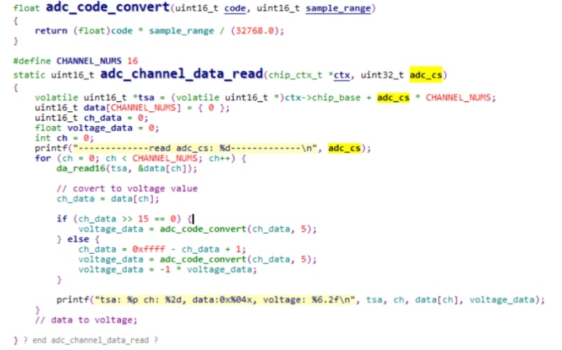 結(jié)合上面寄存器分析,量程處理代碼比較隨意,應(yīng)該要把2.5V,5V,10V 用宏控制,并和量產(chǎn)轉(zhuǎn)換形成對于關(guān)系。