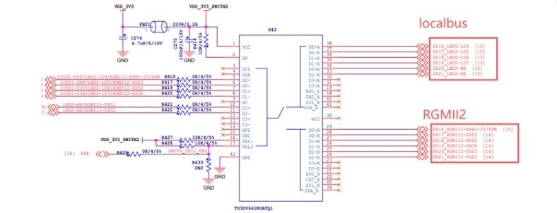 T153處理器的LocalBus與RGMII2網(wǎng)絡(luò)接口存在引腳復(fù)用沖突: