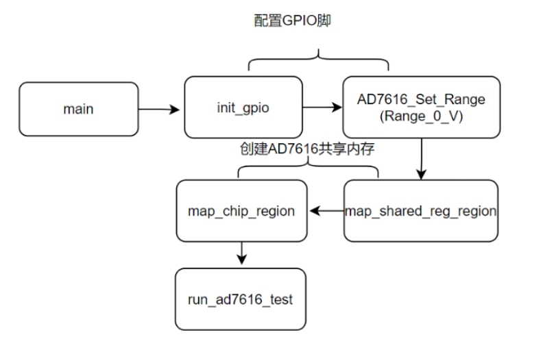 run_ad7616_test 測試代碼關(guān)鍵,它一共分兩部分,初始化寄存器和讀數(shù)據(jù)。