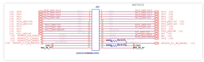 引腳一一對(duì)應(yīng):AD7616模塊通過(guò)J23接口直連開(kāi)發(fā)板