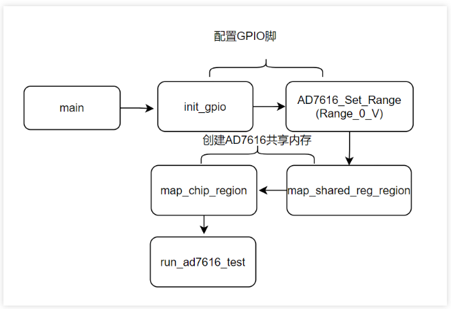 run_ad7616_test 測(cè)試代碼關(guān)鍵,它一共分兩部分,初始化寄存器和讀數(shù)據(jù)。