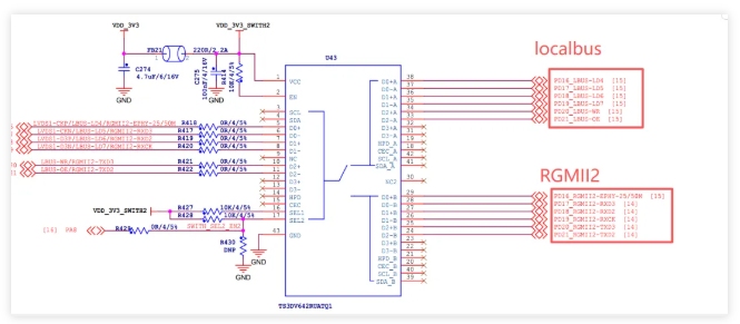 T153處理器的LocalBus與RGMII2網(wǎng)絡(luò)接口存在引腳復(fù)用沖突: