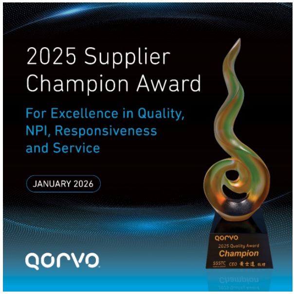 全球領(lǐng)先的連接和電源解決方案供應(yīng)商 Qorvo®(納斯達(dá)克代碼:QRVO)宣布榮獲建興儲(chǔ)存科技公司(SSSTC)頒發(fā)的“電源類(lèi)供應(yīng)商冠軍獎(jiǎng)”。該獎(jiǎng)項(xiàng)每年授予在SSSTC質(zhì)量評(píng)估中表現(xiàn)最為出色的供應(yīng)商。