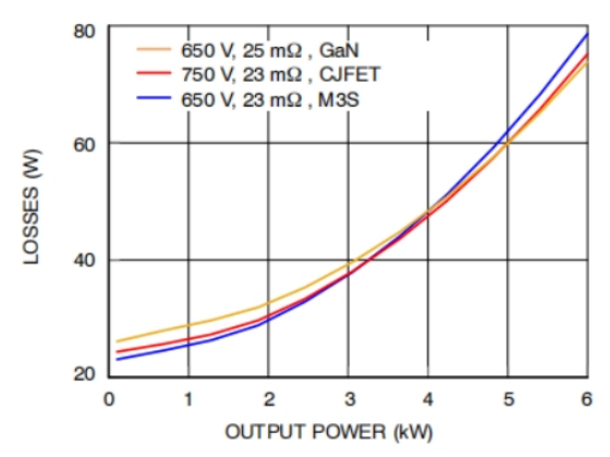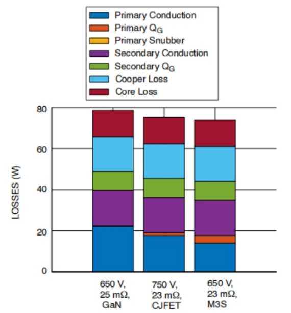 圖5. 采用不同原邊開關(guān)器件的sC系統(tǒng)損耗