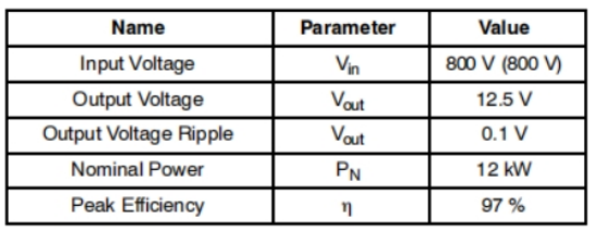 采用sC和1pC的高壓IBC系統(tǒng)將拆分為兩個(gè)轉(zhuǎn)換器,各承擔(dān)一半標(biāo)稱功率(每臺(tái)6kW)。此舉旨在將原邊RMS電流降至可控水平(詳見下面轉(zhuǎn)換器物料清單章節(jié))。3pC方案將通過一臺(tái)12kW轉(zhuǎn)換器實(shí)現(xiàn)。