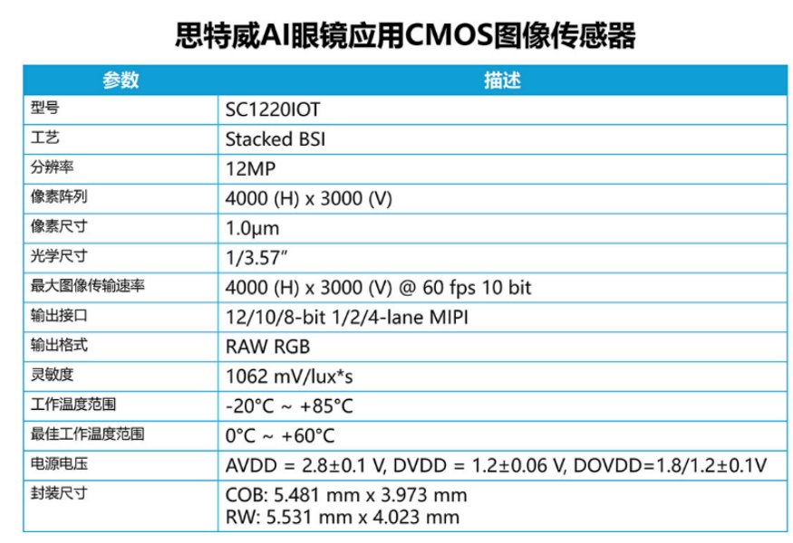 思特威推出全新1200萬像素AI眼鏡應(yīng)用CMOS圖像傳感器