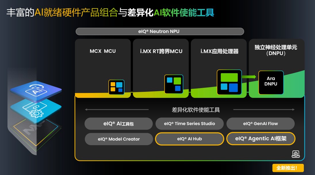 軟件層面,eIQ®框架是關(guān)鍵使能器。CES 2026期間,恩智浦推出eIQ® AI Hub(便捷訪問工具與模型)與eIQ® Agentic AI框架,實(shí)現(xiàn)邊緣智能體的部署與自主學(xué)習(xí)。eIQ® Neutron NPU支持MCX MCU、i.MX RT跨界MCU、i.MX應(yīng)用處理器及Ara獨(dú)立NPU,形成“硬件+軟件”閉環(huán)。