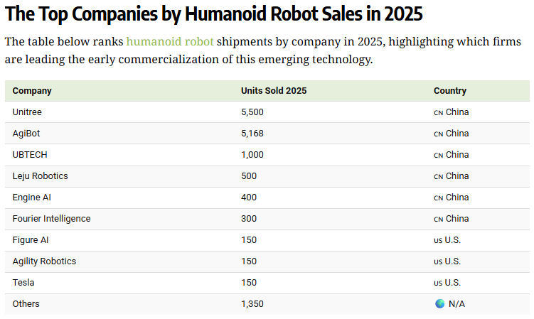 宇樹(shù)科技人形機(jī)器人全球出貨量第一,中國(guó)企業(yè)表現(xiàn)突出
