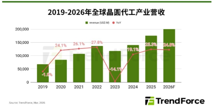 TrendForce集邦咨詢: AI動能穩(wěn)健,預(yù)估2026年晶圓代工產(chǎn)值年增24.8%,部分制程漲價浮現(xiàn)