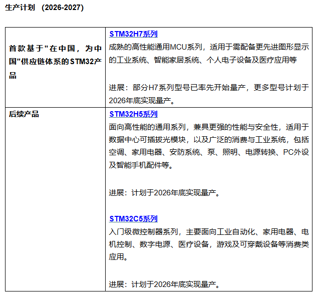 ?STM32微控制器的本地化制造進(jìn)程以STM32H7高性能系列為開端,逐步擴展至側(cè)重性能與安全的STM32H5系列,以及全新的入門級STM32C5系列