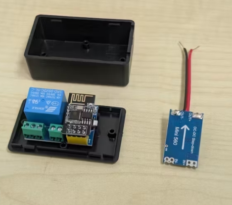 我的研究最終選擇了市場(chǎng)上最簡(jiǎn)單的選項(xiàng)之一——ESP-01/ESP-01S 中繼模塊,這是一個(gè)整體結(jié)構(gòu)相對(duì)緊湊的裝置,集微控制器和繼電器于一體(幾乎無(wú)需焊接)。只要為其提供 5 伏直流電源(例如來(lái)自我車(chē)載手機(jī)充電器的 USB-A 接口),我就能通過(guò)簡(jiǎn)單的代碼草圖來(lái)控制電路(注意:ESP-01/ESP-01S 需要單獨(dú)取出并使用編程器進(jìn)行編程)。將一個(gè) JST 2 針連接器(輸出端)用作與控制臺(tái)按鈕的連接接口。