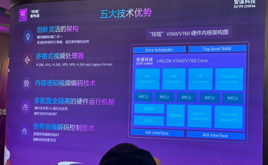 在“超視頻時代,數(shù)據(jù)洪流奔涌而至”的背景下,視頻編解碼技術(shù)正經(jīng)歷從“服務(wù)于人眼”向“服務(wù)于機器智能”的范式轉(zhuǎn)移。2026年3月24日,安謀科技(Arm China)于上海西岸智塔舉辦的媒體活動上,正式發(fā)布了面向AI應(yīng)用的新一代VPU IP——“玲瓏”V560/V760,內(nèi)部代號“峨眉”。這不僅是其“All in AI”戰(zhàn)略下的關(guān)鍵自研成果,更是對異構(gòu)計算架構(gòu)中視頻處理單元(Video Processing Unit, VPU)角色的再度升級。通過引入CAE內(nèi)容感知編碼技術(shù)、原生支持H.266標準以及創(chuàng)新的“積木式堆疊”研發(fā)技術(shù),“峨眉”試圖在碎片化的AIoT與高并發(fā)的云端算力市場之間,尋找性能、功耗與面積(PPA)的最優(yōu)平衡。