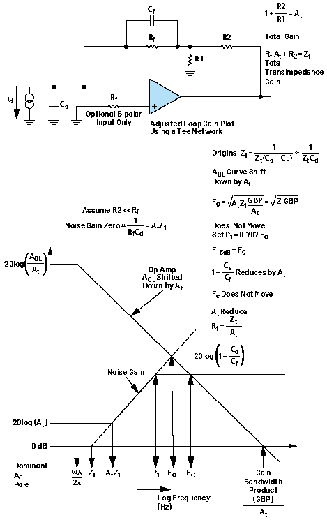 利用T型網(wǎng)絡(luò)拓展光電二極管跨阻放大器(TIA)解決方案的適用范圍——第二部分:環(huán)路增益圖、噪聲和單電源供電