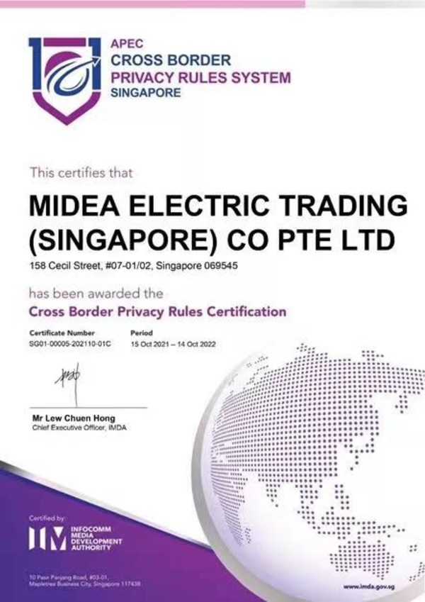 北京2021年12月3日 /美通社/ -- 近日,經(jīng)過BSI廣泛且嚴格的評估,BSI證明美的新加坡電子商務(wù)公司的數(shù)據(jù)安全與隱私保護政策與實踐符合亞太經(jīng)濟合作組織(APEC)跨境隱私規(guī)則(CBPR)體系要求,由新加坡資訊通信發(fā)展管理局(IMDA)為其頒發(fā)了認證證書。