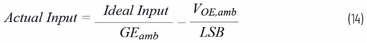 估算出工作溫度下的失調誤差和增益誤差后,我們便可使用公式17來確定SpecCal輸出對應的輸入碼。