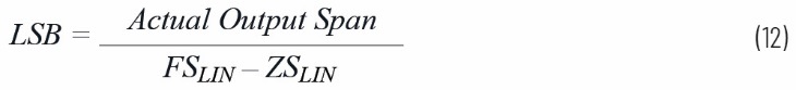 為了使用這種方法校準DAC,在系統(tǒng)的預期工作溫度下,測量數(shù)字碼ZSLIN和FSLIN對應的DAC輸出。構建轉換函數(shù)如下: