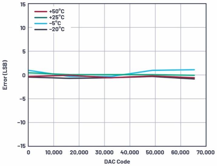 如果無法測量應用環(huán)境在工作溫度時的誤差,使用AD5676R數(shù)據(jù)手冊和環(huán)境溫度時校準的DAC轉換函數(shù)仍可實現(xiàn)高水平的校準。