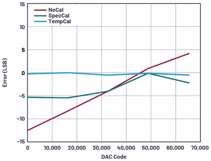 通過測量應用環(huán)境在工作溫度時的誤差,并在寫入DAC以更新輸出時進行系統(tǒng)校正,可以實現(xiàn)最佳水平的校準。