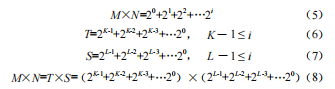 在上述改進(jìn)的直方圖均衡結(jié)構(gòu)中,計(jì)數(shù)器的位數(shù)和直方圖統(tǒng)計(jì)RAM的大小可以互相置換。假設(shè)一幅圖像的分辨率為MXN,計(jì)數(shù)器的位寬為K,進(jìn)位閾值為T(上述算法中T為1024),直方圖統(tǒng)計(jì)RAM的位寬為L(zhǎng),統(tǒng)計(jì)最大值為S(上述算法中為1024),將MXN,T,S改寫成指數(shù)格式: