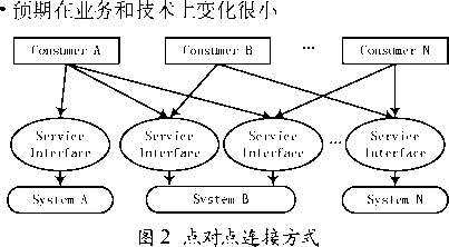 服務(wù)的主要形式是點(diǎn)對(duì),點(diǎn)(Point-to-point)和中心輻射(總 線式)方式。點(diǎn)對(duì)點(diǎn)方式就是服務(wù)消費(fèi)者與服務(wù)直接連接。每 個(gè)服務(wù)消費(fèi)者必須確保與所有相連的服務(wù)接口保持一致(例如 同步或異步、SOAP或REST、服務(wù)的版本、安全性問(wèn)題等)。 圖2所示是點(diǎn)對(duì)點(diǎn)服務(wù)的連接方式。
