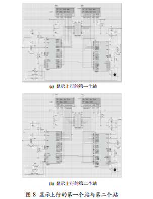 在 P1.5==1,公交車執(zhí)行上行程序時。根據按下按鍵DOWN 的次數,則顯示上行的第一個站和第二個站。結果如圖 8 所示。