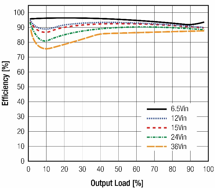 高效的RPX-4.0全功率工作溫度最高可達65°C,并根據(jù)型號和安裝配置的不同,功率減少時可高達 90°C。低輸出功率時效率曲線上升,也就是說轉(zhuǎn)換器適合用在中低輸出功率。這主要是通過智能控制開關頻率和一個屏蔽的集成存儲扼流圈來實現(xiàn),同時確保低 EMI。該設計遵循 RECOM 的3D Power Packaging®高功率密度技術,在引線框結(jié)構(gòu)上使用倒裝芯片。RECOM提供 3 年質(zhì)量保證,也提供RPX-4.0-EVM-1評估板,客戶可以測試所有產(chǎn)品功能并優(yōu)化濾波以滿足目標系統(tǒng)的要求。