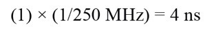 采樣速率為250 MSPS、每幀每轉(zhuǎn)換器一個樣本的轉(zhuǎn)換器(注:在本例中“S”為0,因為它被編碼為二進(jìn)制值-1),其幀長度為4 ns。