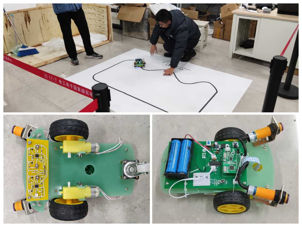 在電工電子實驗中心老師們的指導(dǎo)下,學(xué)生們學(xué)習(xí)并掌握了電路設(shè)計及相關(guān)軟件的基礎(chǔ)知識,充分發(fā)揮創(chuàng)造力及動手能力,自主完成了“智能循跡小車”循跡模塊的電路的設(shè)計制作,并進行智能循跡小車的組裝調(diào)試,最終成功通過賽道測試。