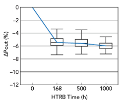 圖7硅基氮化鎵的Pout漂移與HTRB時(shí)間的關(guān)系。