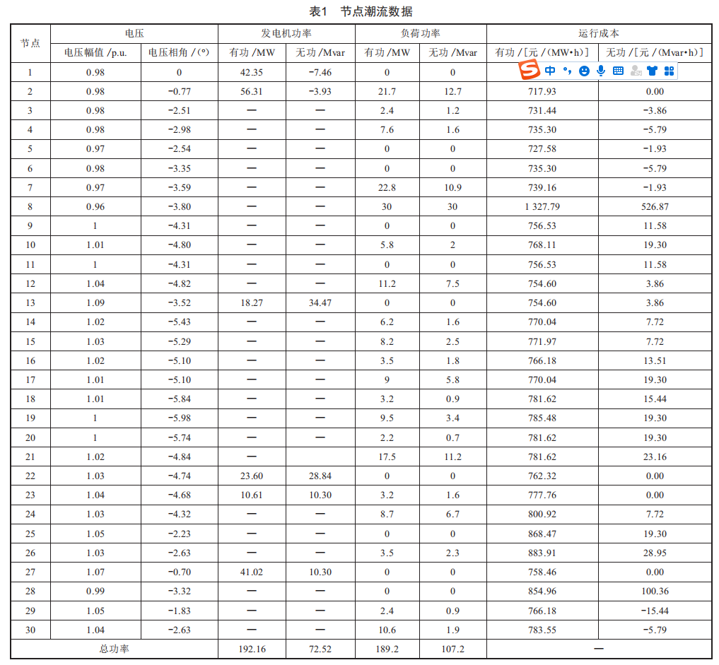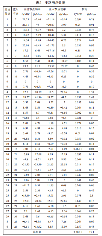 其中29號(hào)節(jié)點(diǎn)的電壓限制在士5%內(nèi),實(shí)際得到的電壓是1.050。這說明在約束范圍內(nèi),實(shí)際電壓應(yīng)最高:6號(hào)發(fā)電機(jī)的無功限制也是在限制范圍內(nèi)的最大值。