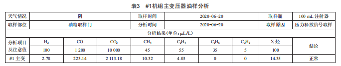 做色譜分析未見異常,油樣分析結(jié)果統(tǒng)計表如表3所示。