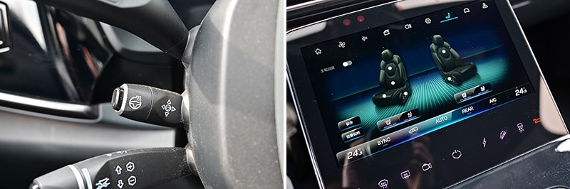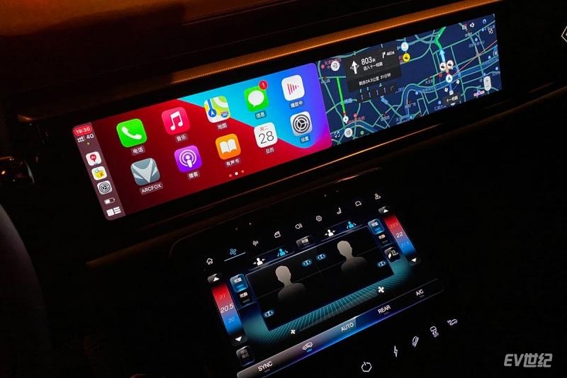 車內最亮眼的全球首款20.3英寸定制化超寬中控大屏,寬度達到935mm,顯示效果極其細膩,功能上也足夠全面,支持我們常用的導航、在線媒體(酷我音樂/喜馬拉雅)、視頻播放和語音助手等等。